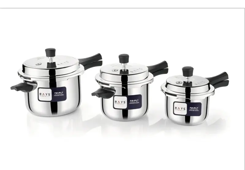 𝐄𝐅𝐅𝐈𝐂𝐈𝐄𝐍𝐓 𝐂𝐎𝐎𝐊𝐈𝐍𝐆 𝐂𝐎𝐌𝐁𝐎 : Set includes 3 and 2-liter pressure cookers for versatile meal preparation, saving time and effort in the kitchen. 𝐈𝐍𝐃𝐔𝐂𝐓𝐈𝐎𝐍 & 𝐆𝐀𝐒 𝐒𝐓𝐎𝐕𝐄 𝐂𝐎𝐌𝐏𝐀𝐓𝐈𝐁𝐋𝐄 : Both cookers feature a 430 magnetic stainless steel outer layer for compatibility with various cooking surfaces. 𝐒𝐀𝐅𝐄𝐓𝐘 𝐅𝐄𝐀𝐓𝐔𝐑𝐄𝐒 : Fusible safety valve and gasket release system ensure maximum safety during cooking, providing peace of mind. 𝐈𝐒𝐈 & 𝐂𝐄 𝐂𝐄𝐑𝐓𝐈𝐅𝐈𝐄𝐃 : Certified for quality and safety, guaranteeing reliable performance in your kitchen. 𝐃𝐔𝐑𝐀𝐁𝐋𝐄 𝐂𝐎𝐍𝐒𝐓𝐑𝐔𝐂𝐓𝐈𝐎𝐍 : 2.5mm base thickness and riveted sturdy handles ensure long-lasting durability and ease of handling. 𝐕𝐄𝐑𝐒𝐀𝐓𝐈𝐋𝐄 𝐔𝐒𝐀𝐆𝐄 : Cook a variety of dishes including dal, rice, khichdi, vegetables, and meat in minutes, catering to diverse culinary needs. 𝐇𝐘𝐆𝐈𝐄𝐍𝐈𝐂 𝐈𝐍𝐍𝐄𝐑 𝐒𝐔𝐑𝐅𝐀𝐂𝐄 : Food-grade AISI 304 18/8 stainless steel inner surface prevents food particles from sticking, ensuring easy cleaning.